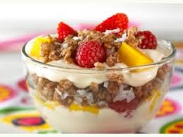 frutos secos, fruta fresca, yogur con cereales integrales o muesli, un puñado